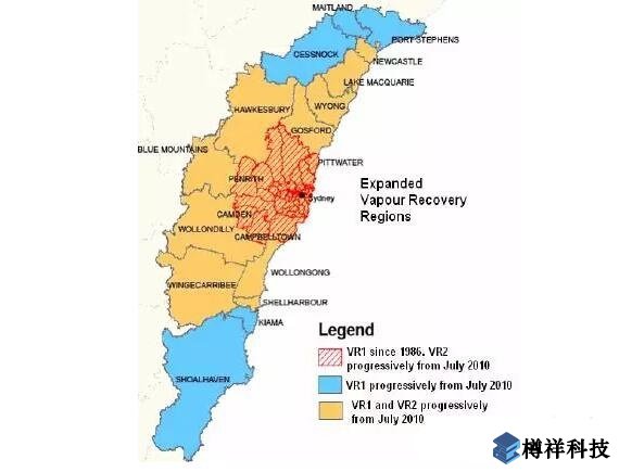 澳大利亞地廣人稀,油氣回收從人口較稠密地區(qū)開始。澳大利亞的新南威爾士地區(qū)在2009年正式通過法規(guī),要求加油站采用二級油氣回收系統(tǒng)、氣液比在自動在線監(jiān)測以及一級油氣回收儲油罐壓力監(jiān)測。