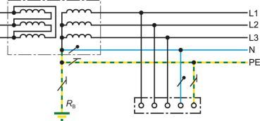 在TN系統(tǒng)中,一點直接接地并且電氣裝置的裸露導電部分通過保護接地線連接到這一點。