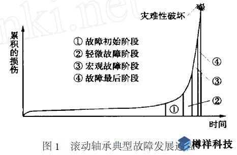 1. 1 滾動軸承故障發(fā)展的4 個階段***階段,即軸承開始出現(xiàn)故障的萌芽階段,這時溫度正常,噪聲正常,振動速度總量及頻譜正常,但尖峰能量總量及頻譜有所征兆,反映軸承故障的初始階段。這時真正的軸承故障頻率出現(xiàn)在超聲段大約20~60kHz 范圍。