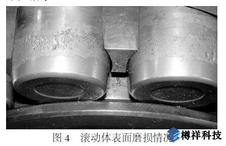 2009 年4 月27 日,對此風(fēng)機進行停機檢修,拆開該滾動軸承,發(fā)現(xiàn)其滾動體及內(nèi)外圈滾道存在非常嚴重的磨損、剝落情況,與診斷結(jié)論相吻合,如圖4、圖5 所示。