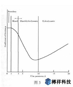 λ=hmin/σ,hmin為***小油膜厚度,σ 為摩擦副綜合表面粗糙度,σ=(σ12+σ22)1/2,σ1 為摩擦副表面1 的粗糙度,σ2 為摩擦副表面2 的粗糙度,于是便有圖3。