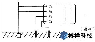 2、測量保護(hù)接地電阻時,一定要斷開電氣設(shè)備與電源連接點。在測量小于1Ω的接地電阻時,應(yīng)分別用專用導(dǎo)線連在接地體上,C2在外側(cè)P2在內(nèi)側(cè)如圖四所示: