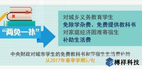 中央財政對城市學生的免費教科書和寄宿生生活費補助從2017年春季學期開始。
