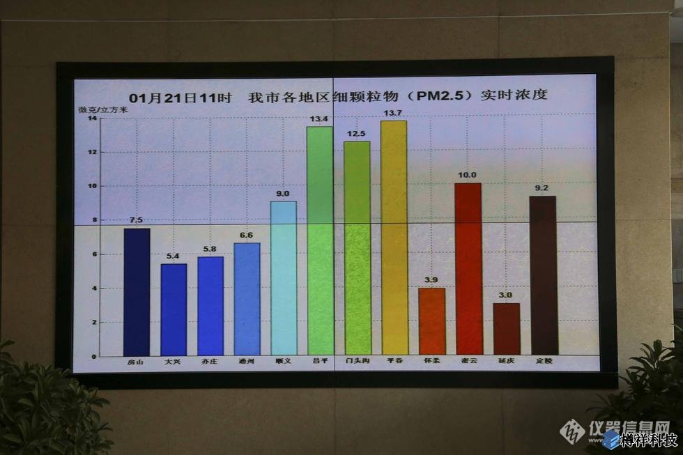 大屏幕上顯示的是北京各地區(qū)PM2.5的實時濃度。