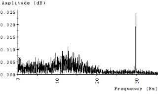 如果出現(xiàn)問題,也會(huì)在頻譜中找到驅(qū)動(dòng)和驅(qū)動(dòng)速度。與振動(dòng)一樣,1倍轉(zhuǎn)速意味著對(duì)機(jī)器的不平衡影響。在圖4中,風(fēng)扇速度顯示剛好超過25 Hz。在圖5中,運(yùn)行速度為1,800RPM泵電機(jī)可以在低于30 Hz的頻率下識(shí)別。在這兩種情況下,趨勢這些峰值的幅度可以告訴我們很多關(guān)于機(jī)器狀況的事情。通常,該峰值將處于或接近頻譜的本底噪聲。振幅將在直接驅(qū)動(dòng)泵組件上爬升的兩個(gè)***常見原因是由于未對(duì)準(zhǔn)或耦合損壞。